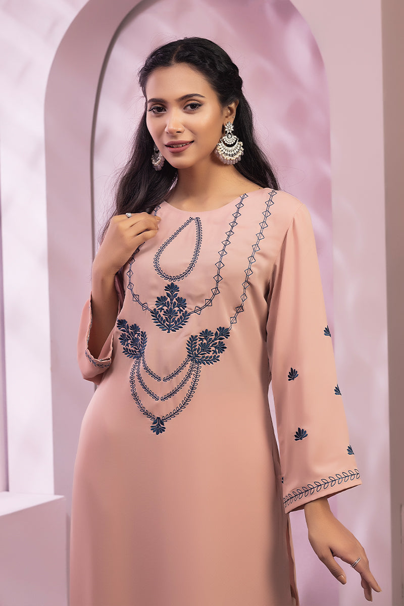Embellishment: Embroidery on neckline, & sleeves. Embroidery with sea blue color thread.
