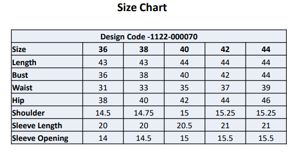 Embellishment:  Floral motif embroidery on the neckline & sleeve. Embroidery with multicolor thread.