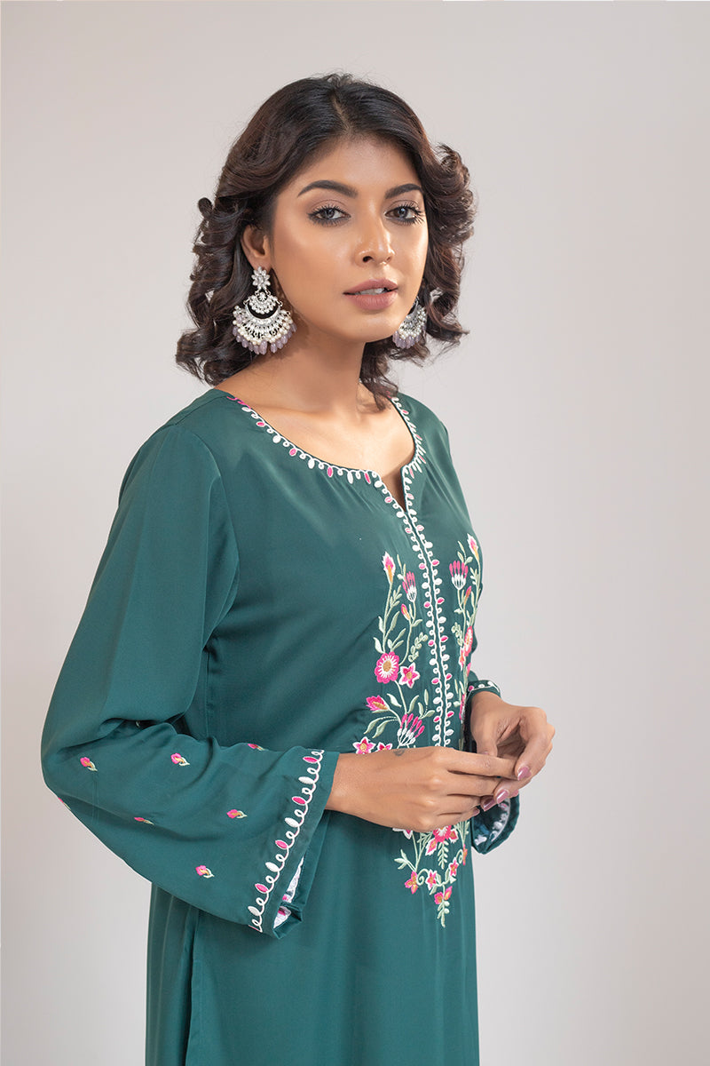 Dark Green Cherry Georgette Kurti Women 1122 000070