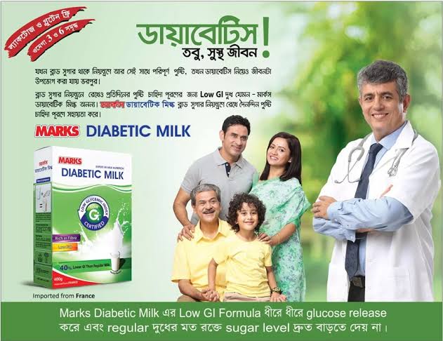 MARKS Milk Based Diabetic Diet is specially formulated combining goodness of milk with carbohydrtes( maltodextrines, mono & disaccharides, fructose) and fibres ( dexen & inulin) keeping in view the need of the diabetic patients.