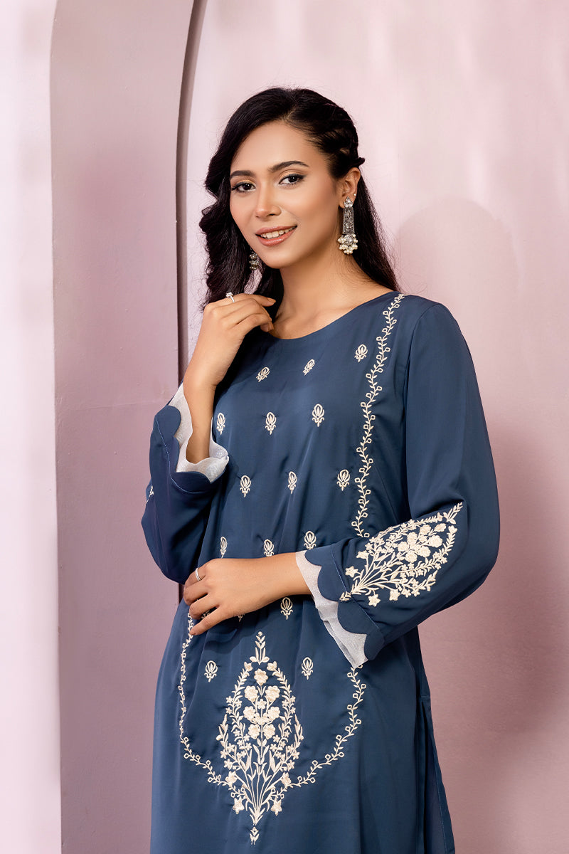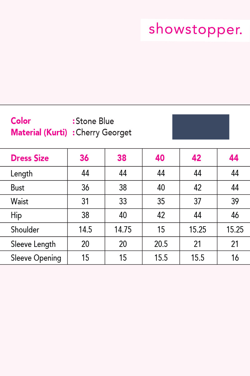 Embellishment: Embroidery on body, & sleeves. Embroidery with off-white color thread. Sleeves designed with white organza.